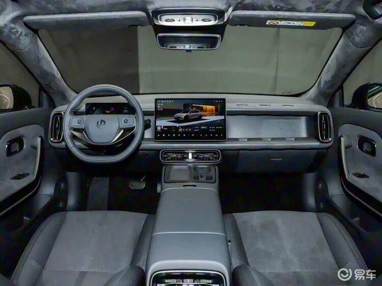 内饰设计和零跑B系列相似,使用了全液晶表盘+悬浮屏的组合,该仪表盘直接连接在方向盘转向柱上。副驾驶前方配有魔术扩展岛台,拥有上下共6个开孔,可以和周边产品进行扩展。车内采用大面积软包,基础款提供速域紫与驰影灰两种配色,高配款则采用竞速灰主题,顶棚与座椅选用真皮+仿麂皮超纤绒材质,并压印赛道纹理与Lafa5专属字体。
